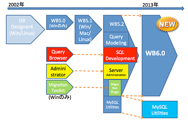 (プラスアルファ部分となるMigration Toolkitは他のRDBMSからMySQLへの移行にWindows版のみが用意され、その後Pythonスクリプトによるプラグインとして再実装されることになります)