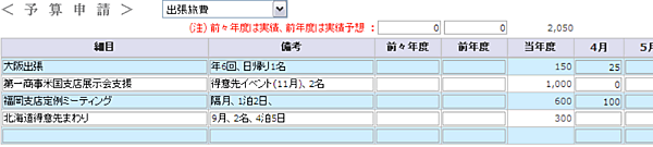 そこで、今回ご紹介するのが「BudgetRunner」です。「BudgetRunner」はphp言語で書かれたOSSで、Sourceforge.jpに公開されています。「BudgetRunner」を使うと、予算編成作業が簡単に行えるようになります。次の画面イメージは「BudgetRunner」の予算入力画面の一部です。