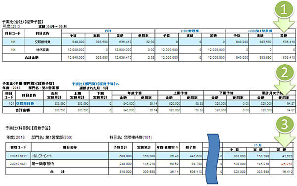 つまり、全体としては辻褄が合ってはいても、個別に見ていくと予算を超過している項目が浮かび上がってくることがわかります。