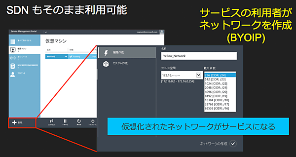 利用者は、自分が使いたいIPアドレス体系をそのままクラウド事業者が運営しているデータセンター上に構築できるため、BYODならぬBYOIP(Bring Your Own IP)が可能となるわけだ。まさに、サービスのための新しいネットワーク像が浮かび上がってくる。