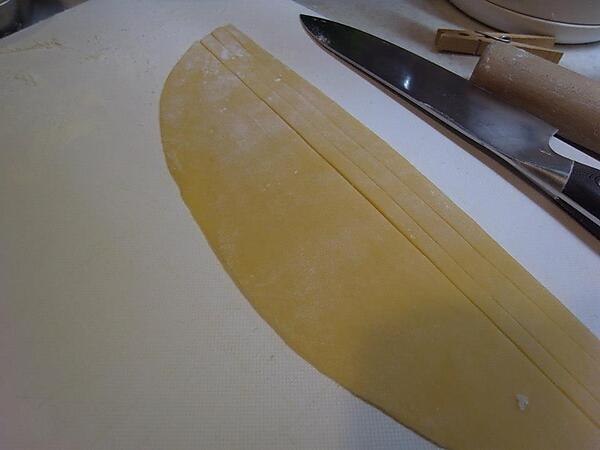手打ちパスタは、Dancyu 2010年10月号に掲載されていた飯塚宏子さんのレシピで作っています。それなりに手間はかかるのですが、乾麺とは違った食感で、少々くせになる感じです。