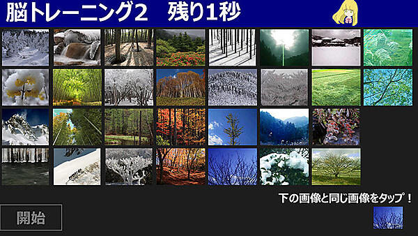 秒数を選択したら、アプリケーションバーを閉じ[開始]ボタンをタップします。すると30枚の画像がランダムに表示されます(図2)。
