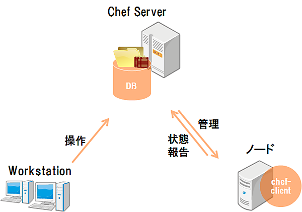 Chef Serverは、内部DBを持ち、クックブックやノードのデータを1元管理するサーバです。