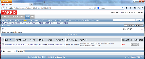 タブの「設定 (Configuration)」-「ホスト (Hosts)」を選択し、ホスト一覧を表示します。