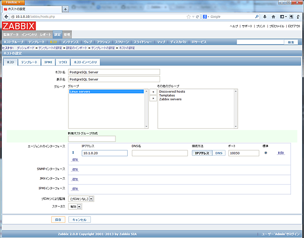 Zabbix の Web 管理画面で監視対象のサーバーを登録します。