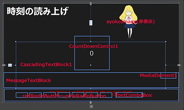 <Controls:CountdownControl x:Name="CountdownControl1" HorizontalAlignment="Left" Height="276" Margin="527,247,0,0" VerticalAlignment="Top" Width="317" Seconds="10" FontFamily="Meiryo UI" FontSize="72"/>■(4)