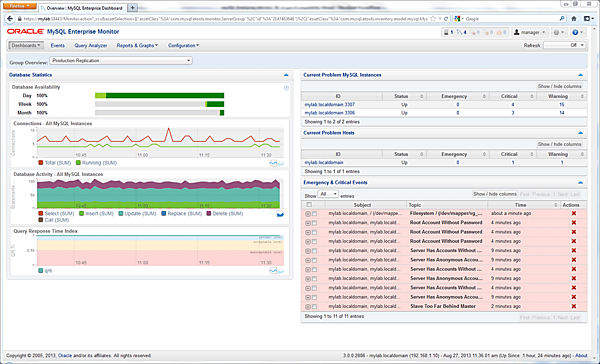 MySQL Enterprise Monitor 3.0を使用すると、複数台のMySQLサーバーの稼働状況をブラウザ経由で一元的に監視することができます。そして、MySQLの稼働状況に問題があった時に警告を通知したり、パフォーマンスの問題を引き起こしているSQLを稼働状況のグラフを見ながら簡単に特定したりできます。MySQL Enterprise Monitor 3.0では、インターフェースが刷新され、アドバイザ機能で使用できるルールが増加したり、エージェントレス構成も取れるようになったりと、更に機能強化されています。
