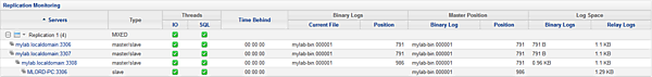 MySQL Enterprise Monitor 3.0を使用することで、レプリケーション環境の安定運用を実現できます。レプリケーションを使用している場合、MySQL Enterprise Monitor 3.0は自動的にトポロジを判断し、サーバー間でのデータ転送の遅延やSQLスレッド、I/Oスレッドの稼働状況を監視できます。また、前述のアドバイザ機能により、レプリケーションの稼働状況に問題があれば、警告通知もできます。