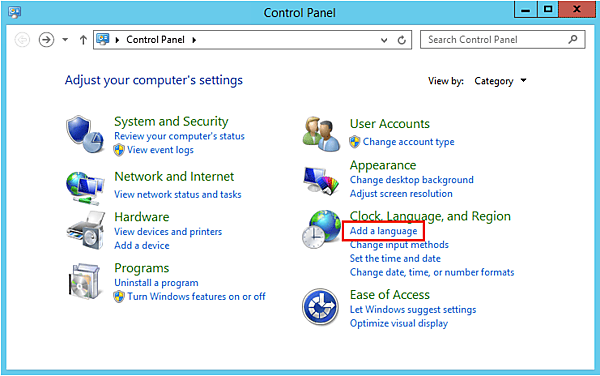 - コントロールパネルの”Add a language”をクリックします。