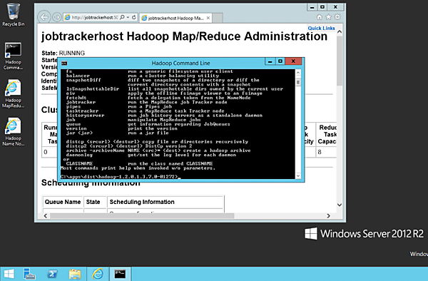 「接続」をクリックすると、リモートデスクトップ接続ファイルが降ってきます。これを使ってログオンすると、HDInsightがWindows Server 2012 R2で動いていることがわかります。