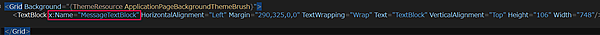 図6 XAML内のTextBlockコントロールにもx:Name=”MessageTextBlock”が追加された(クリックで拡大)