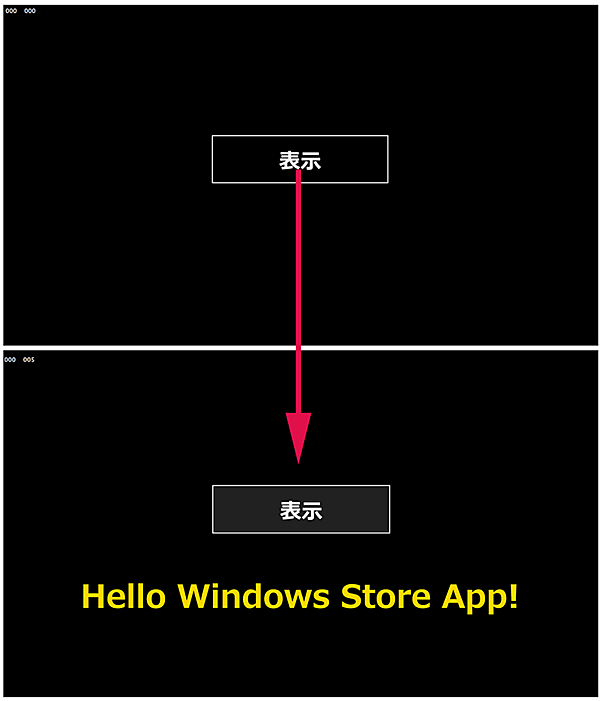 ボタンクリックで「Hello Windows Store App!」と表示する