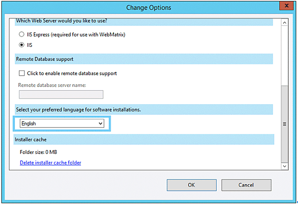 [ Select your preferred language for software installations ]の値を[ English ]から[ Japanese ]に変更して[ OK ]ボタンをクリックします。