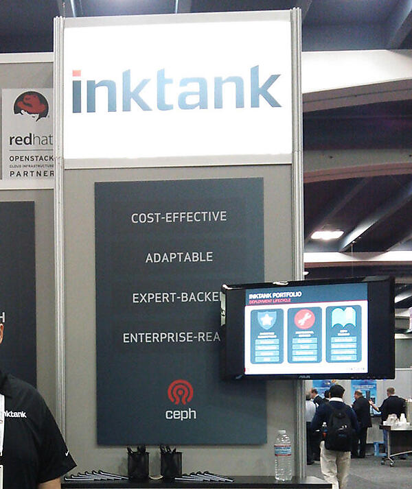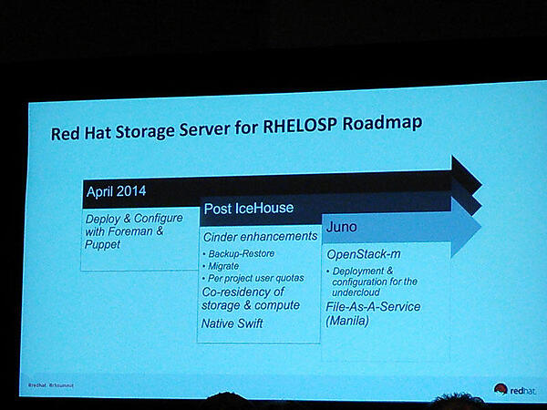 今回、inktank社のVP兼Ceph製品担当の技術者と会話を交わすことができました。OSSの分散ストレージ基盤ソフトウェアであるCeph自体は、ブロック・ストレージ、オブジェクト・ストレージ、FUSEアクセスの機能を有しており、比較的簡単に分散ストレージ基盤を導入・使用できるようになっていますが、Red Hat StorageとCephとの性能差については、そのストレージ基盤へのアクセスの仕方(利用方法)によって異なると語っていました。inktank社がRed Hat Summit 2014の展示ブースで配布していたCephのパンフレットは、以下のURLから入手できますので、一読をお勧めします。
