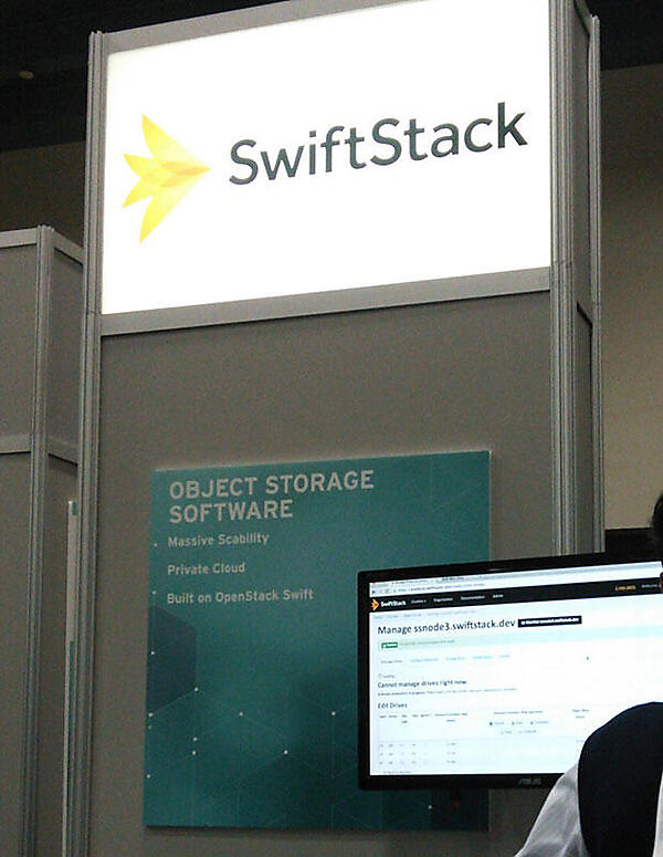 オブジェクト・ストレージ基盤OSSのSwiftStack(スウィフト・スタック)は、WebUIで簡単に構築・管理が可能であることが訴求されていました。展示ブースで情報交換された来場者には、SwiftStack CEOのJoe Arnold氏著作のSwiftの本が無料で配られていました。