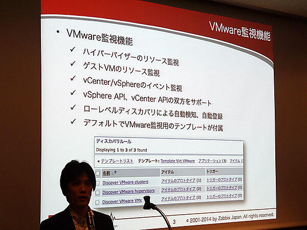 寺島氏:2.2からはVMwareの監視機能が追加されています。リリースからまだ半年ほどですが、この要望はもともと多かったことから、世界的にも早くにバージョンアップするユーザーが多い状況です。