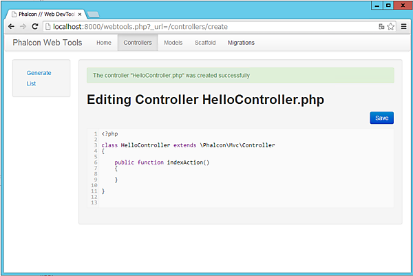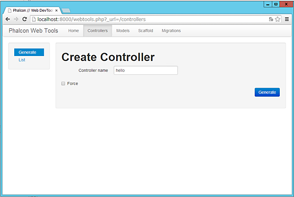 Phalcon WebToolsの確認