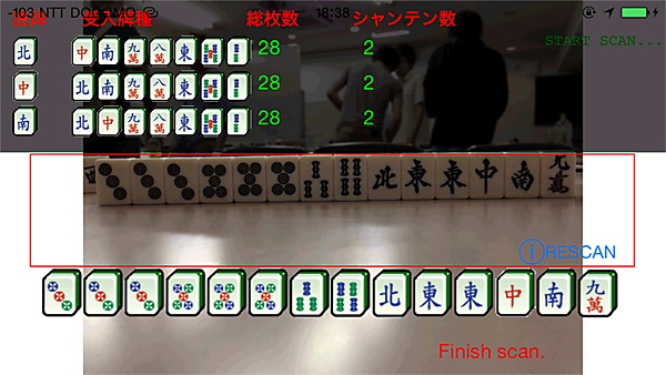iPhoneのカメラで手牌を映し出すと、次に切るべき牌をリアルタイムで教えてくれるアプリです。各牌を切った際の受け入れ牌の枚数とシャンテン数も教えてくれます。