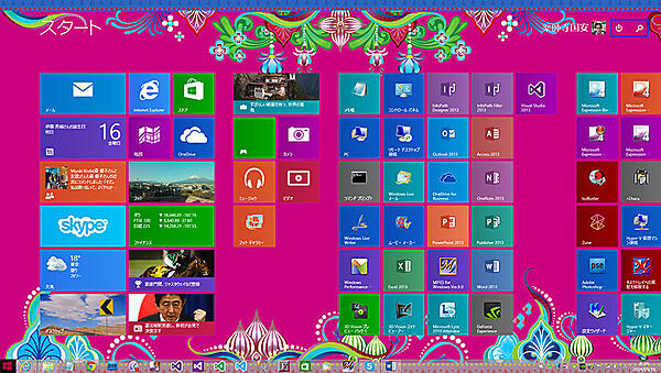 Windows 8.1 Updateをインストールすると、スタート画面に、「電源アイコン」や「検索アイコン」が追加されますので、正常にアップデートされたかどうかの確認ができます(図1)。