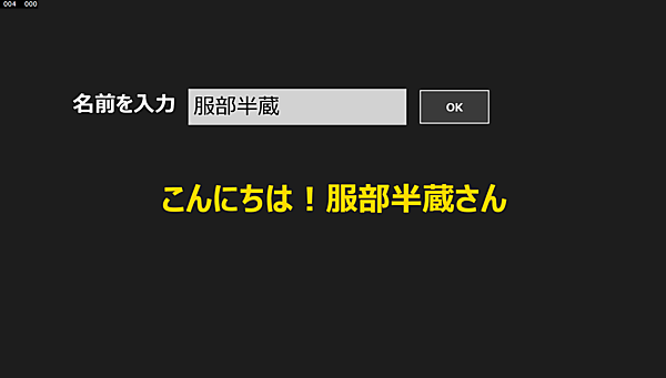 TextBlock1.Text = "こんにちは!" + TextBox1.Text + "さん";