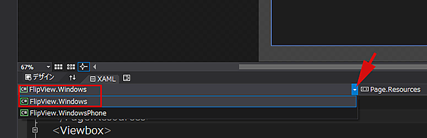 FlipView WindowsPhoneのデザイン画面が開いた場合は、図3の方法で、FlipView.Windowsの画面を表示させてください。