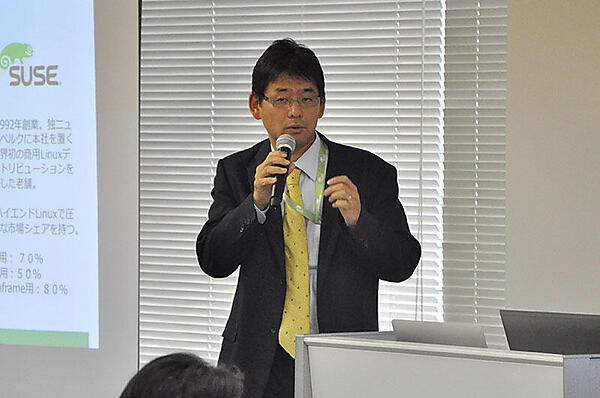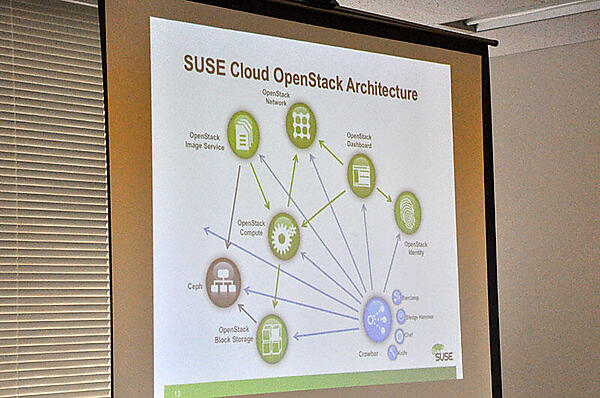 はじめに、村川氏はSUSE CloudがOpenStackに参加した経緯について紹介。SUSEの得意先であるRackSpace社のビジネスにかねてから注目していたAlan Clark氏が、SUSEを率いてプロジェクトに参加したの発端だと話す。RackSpace社は前回説明した通り、NASAとともにOpenStackを立ちあげた企業であり、Clark氏は現在OpenStackのチェアマンとして活動している。