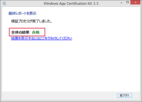 検証が終わり、問題がない場合は、図7のように「合格」と表示されます。不合格の場合はその理由も表示されますので、修正してアプリパッケージを作りなおします。