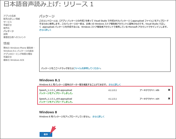 表示されている枠内に、先ほど作成した(図8)、2つの「.appxupload」ファイルをドラッグ&ドロップします。