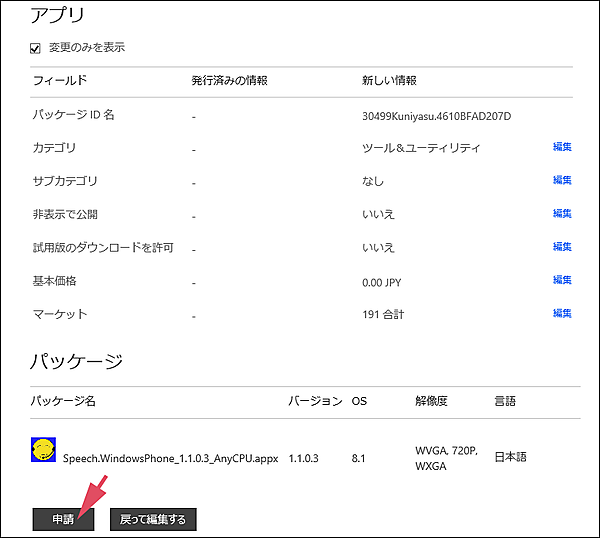 まずは図3のWindows 8.1アプリの申請の続きからはじめましょう。図3の画面から、「販売の詳しい情報」をクリックします。