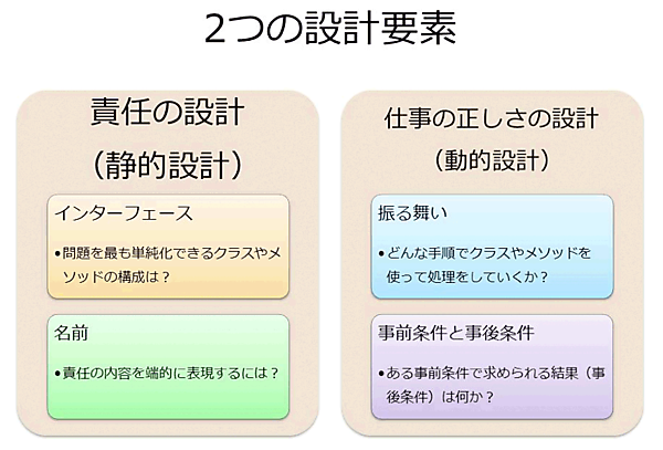- [高梨] テスト駆動型開発はいわゆるテスト手法ではありません。インクリメンタルな設計を促す開発手法です。その前に、プログラミング設計について認識を合わせましょう。プログラミング設計は、おおきく、下記のような2つの設計要素にわけられます。