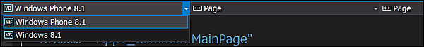 「Windows 8.1」か「Windows Phone 8.1」か、どちらをメインにコードを記述していくかは、図12で選択ができます。今回は、「Windows Phone 8.1」をメインにコードを書いていきます。「Windows 8.1」をメインにコードを記述すると、解像度の違いで、「Windows Phone 8.1」で実行した際、画面が極端に小さく表示されるからです。