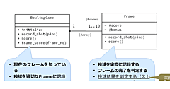 - [古谷] はい、ちゃんと思い出しました。設計としてまとめたものを見ると、なんかすごいことをやった気分になっていましたが、コードにしたらたいしたことありませんね。scoreメソッドなんて、何の計算もせずにゼロをそのままリターンしているし……。
