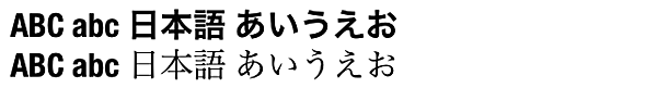 図2: helveticaNeueCondensedBoldによる表示(上)とhelveticaHiraminによる表示(下)