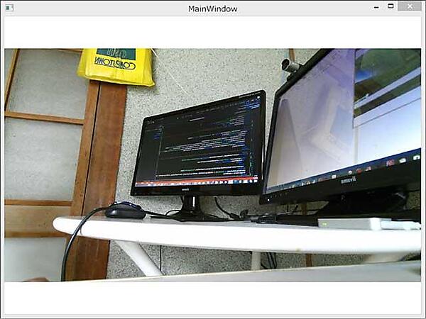 の値がstrideに適用されることになります。「offset」には入力バッファのオフセットを指定します。今回は「0」を指定しています。 - Image1のSourceプロパティにcolorBitmapオブジェクトを指定します。これでRGBカメラからの画像が表示されます。