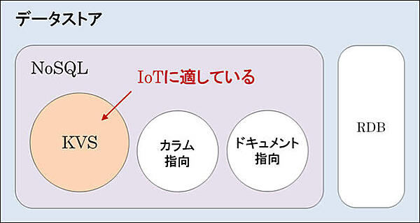 これらの中でKVSは構造が最もシンプルであるため、センサーデータ蓄積システムのような小さくて大量のデータの蓄積や、高速なデータアクセスが必要な用途に最適と考えられます。
