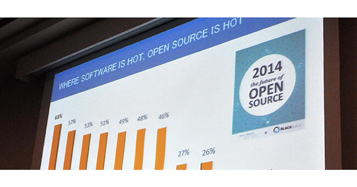 今回ブラックダックが主催するセミナーにおいて、ビルはオープンソースソフトウェアの現状についてIDCのデータなどを使い、企業での利用が拡がっているという話題からセッションを開始しました。