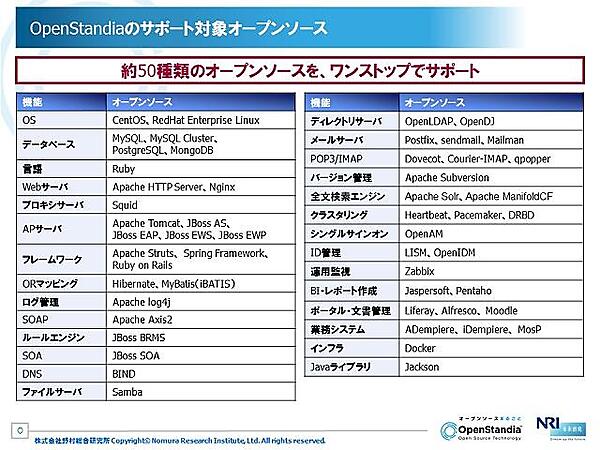 NRIは2006年から、企業がOSSをワンストップで導入するためのOpenStandiaのビジネスを展開している。
