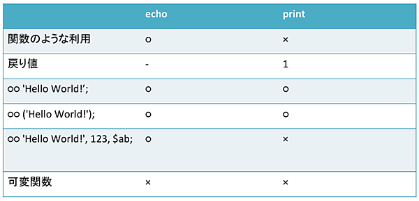 まずはPHPで文字列を出力する際に使われるechoとprintです。この2つは全く同じ動作をするように見えますが、何か違いがあるのでしょうか?私の感覚だとPHPからプログラミングを始めた方はecho、他の言語から入って来た方はprintを使う傾向があるように思います。