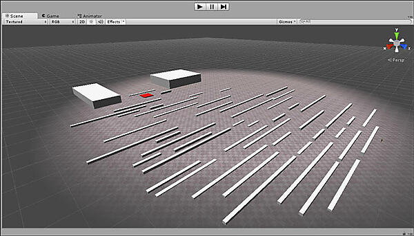 最初にゴールとゴールエリアを設定します。ここでは「Cube」を使ってゴールを作成していますが、必ずこのようにしなければならないというものではありません。読者自身が、自由にゴールの位置や形状、障害物の配置を決めていただいて構いません。