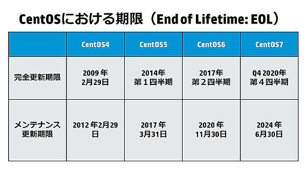 - 採用前に、CentOS 7における完全更新とメンテナンス更新の期限を知っておく