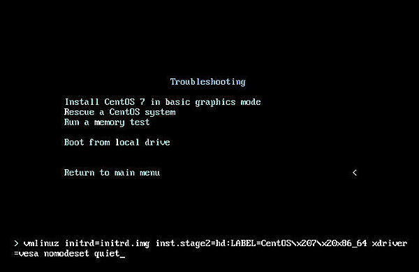 CentOS 7のインストーラーが、起動途中でモニタに何も出力されない場合、モニタの出力範囲外に自動的に設定されている可能性があります。この場合、「Troubleshooting」を選択し、Install CentOS 7 in basic graphics mode」で対処することになりますが、それでもモニタに何も出良くされずインストールが続行できない場合は、CentOS 7のインストーラーのブートプロンプトで幾つかのパラメータを付与することができるようになっています。モニタ出力範囲外によってインストーラーの画面が表示されない問題を回避する具体的なパラメータとしては、以下が利用可能です。