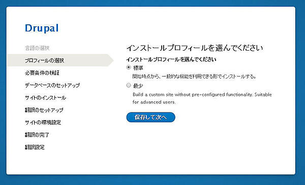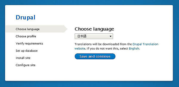 ブラウザの設定が日本語であれば自動的に日本語の設定画面になります。“Save and continue”をクリックして進んでください。
