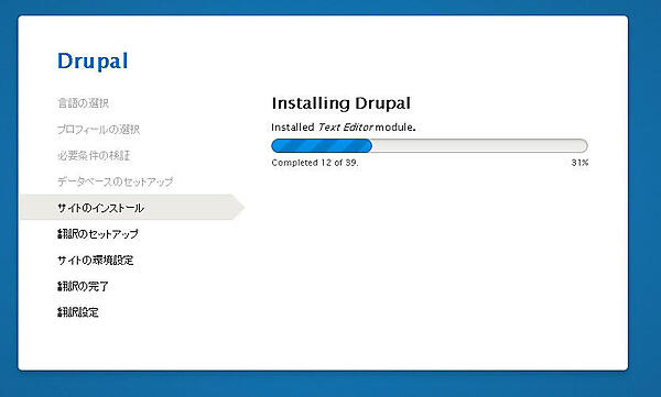 さあ、もう少しです。次はファイル、ディレクトリーの設定です。具体的にはこのDrupalが入っている /var/www/html の下の /sites/defaultにfiles ディレクトリーを作成、またdefault.settings.phpとdefault.services.ymlをそれぞれsettings.php、services.ymlとしてコピーし書き込み権限を与えます。