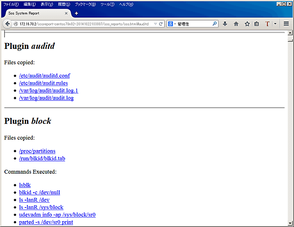 以上で、遠隔のPCからsosreportコマンドで取得したログや設定ファイル等をWebブラウザで確認することができます。