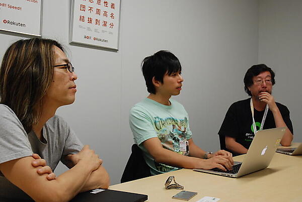 その際に「OpenStackもそうですが、社内のインフラのオープンソースを推進しているのは今年になって入社したOps(システム運用)のトップ、ニールさんというひとがキーパーソンなんですよ」とOpenStackのプレゼンテーションを行った運用グループの佐々木氏が教えてくれた。今回はそのキーパーソンである佐藤ニール氏に楽天としてのオープンソースへの取り組みや課題などをインタビューした。今回参加してくれたのはGlobal Operations DepartmentのExecutive Officer 佐藤ニール氏、同じくJapan Platform Section, Data Store Platform Group 佐々木健太郎氏それにオープンソースやLinuxの世界では有名人、楽天で技術理事を務める吉岡弘隆氏の3名だ。