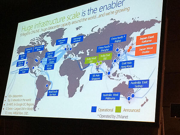 写真:ワールドワイドに配置されるAzureデータセンター(クリックで拡大)