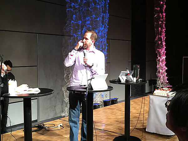 写真:懇親会でマイクを握るスコット・ハンセルマン氏