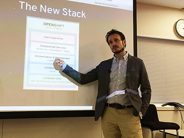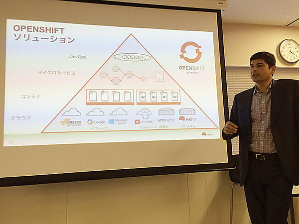 写真:OpenShiftを解説するバダニ氏