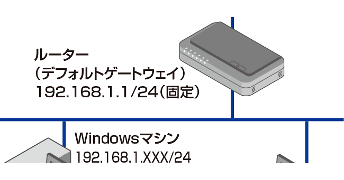 ネットワークはルーター経由でインターネットと接続されており、ルーターのIPアドレスは、「192.168.1.1」とし、ネットワークに接続されているほかのPCは、ルーターからDHCPでIPアドレスを割り振ります。プライベートアドレスが割り振られる範囲は、「192.168.1.10〜192.168.1.20」とします。