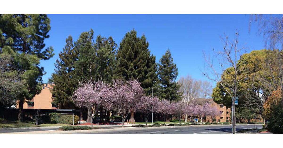 図1:著者撮影。シリコンバレーでも、この時期はこのようなピンクの花が咲いているが、桜ではなくアーモンドの花、とのこと。所変われば同じように見えるものも違ったりする。ちなみにシリコンバレーでも今年は例年になく花粉が大量に飛んでいて、花粉症には辛い季節。